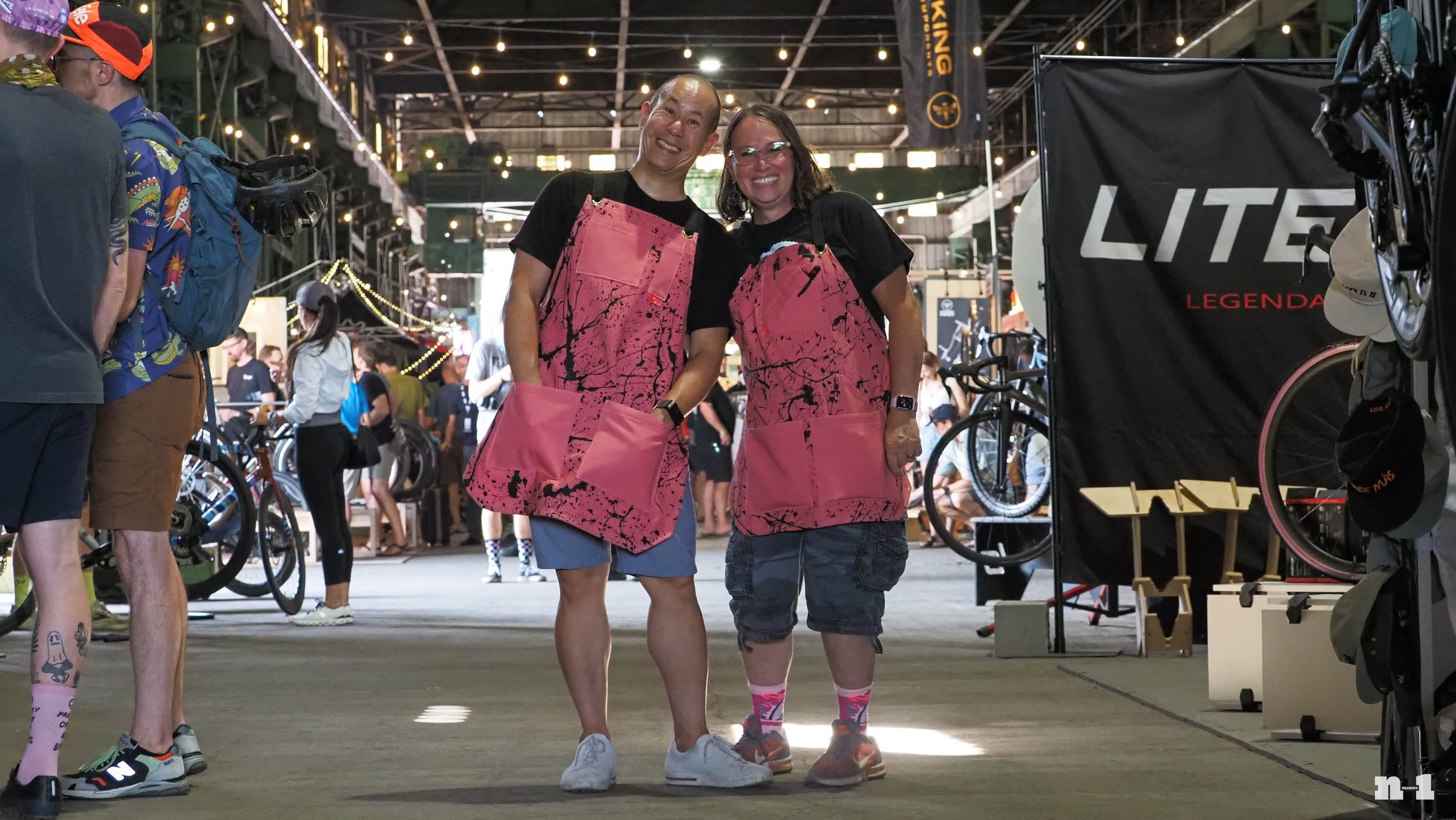 Schwinn designed and made these shop aprons herself through her Wow What Studio brand, which were quietly offered for sale at the Moondust Apparel booth. They feature not only multiple sizes, but pen pockets specific to right- or left-handed mechanics. The strap configuration is also shockingly comfortable even when the pockets are loaded up with tools, and they’re anchored in big brass eyelets. And why yes, I did end up bringing one back home with me to Boulder. Multi-talented, indeed.